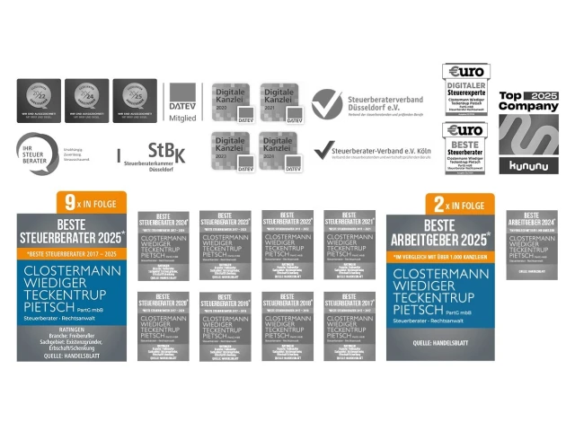 Wir, die CLOSTERMANN WIEDIGER TECKENTRUP PIETSCH PartG mbB Steuerberater Rechtsanwalt, sind Ihre erstklassige Adresse für zuverlässige Steuerberatung und effiziente Finanzbuchhaltung in Ratingen. Unser dynamisches Team besteht aus hoch qualifizierten Steuerberatern und Finanzexperten, die sich in sämtlichen Fällen einem streng lösungsorientierten und transparenten Handeln verpflichtet fühlen. In enger Abstimmung mit unseren Mandantinnen und Mandanten setzen wir alles daran, ausschließlich optimale Resultate zu erzielen.
