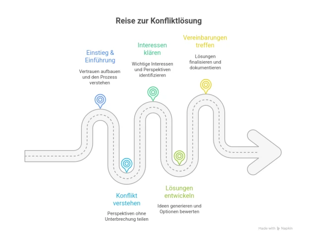 Auf dieser Grundlage entwickle ich ein individuelles Konzept für den Mediationsprozess – abgestimmt auf Ihr Thema, Ihren Zeitrahmen und die Dynamik der Beteiligten.
